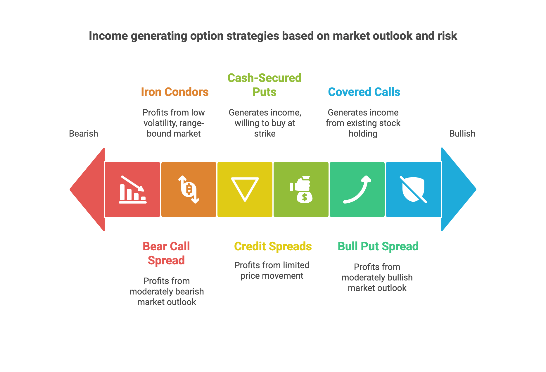 Income-generating strategies typically involve selling options to collect premiums. These are often employed when traders expect neutral to moderately directional price movements, allowing time decay and/or limited price movement to work in their favor.