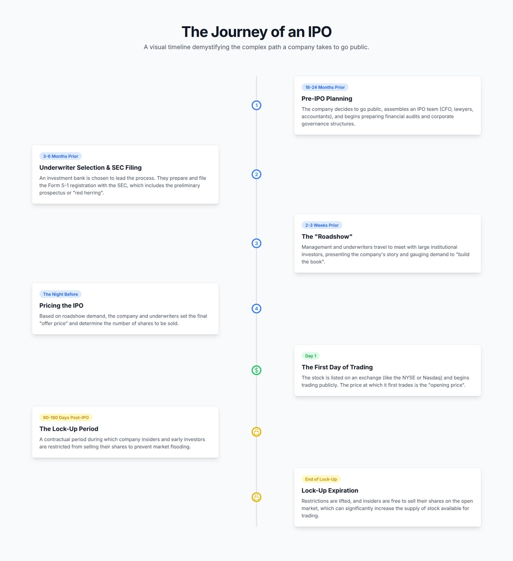 Perhaps one of the most significant and often overlooked risks in IPO investing is the lock-up period expiration. A lock-up is a legally binding agreement that prohibits company insiders, such as founders, executives, employees, and early venture capital investors, from selling their shares for a predetermined period, typically 90 to 180 days after the IPO.